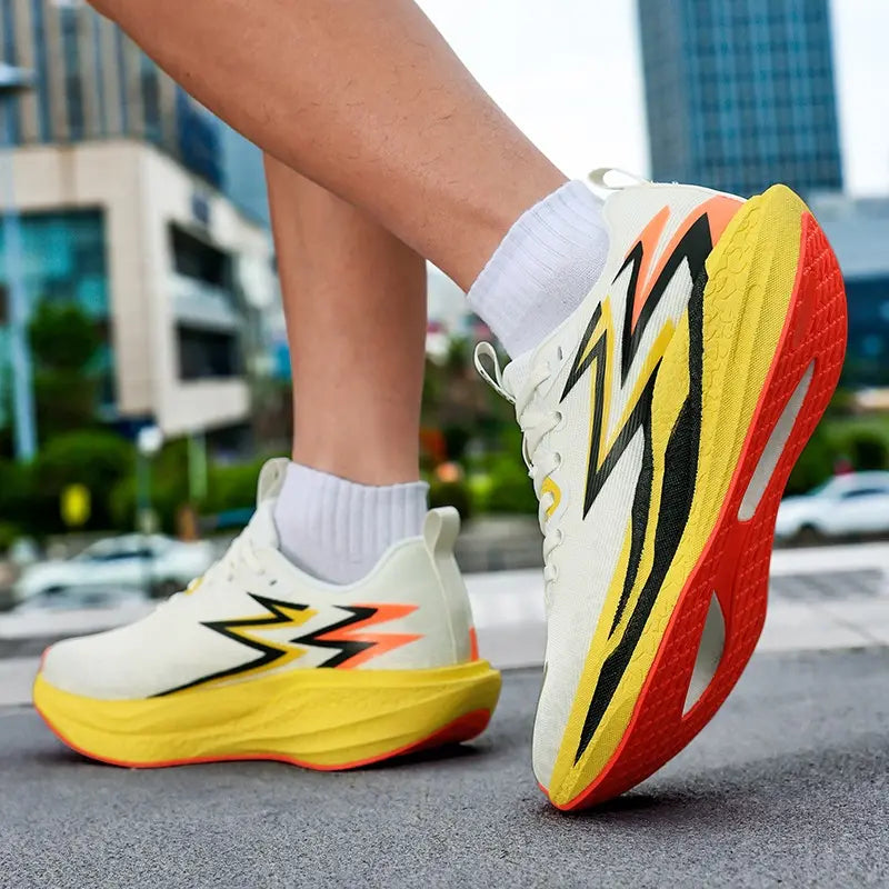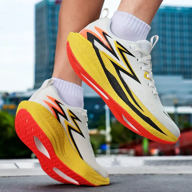 Diseñada para quienes corren en serio. Placa de propulsión, espuma de alta resiliencia y malla técnica ultraligera — construida para ir más lejos, durar más, sentir cada paso.