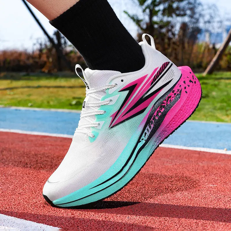 Diseñada para quienes corren en serio. Placa de propulsión, espuma de alta resiliencia y malla técnica ultraligera — construida para ir más lejos, durar más, sentir cada paso.